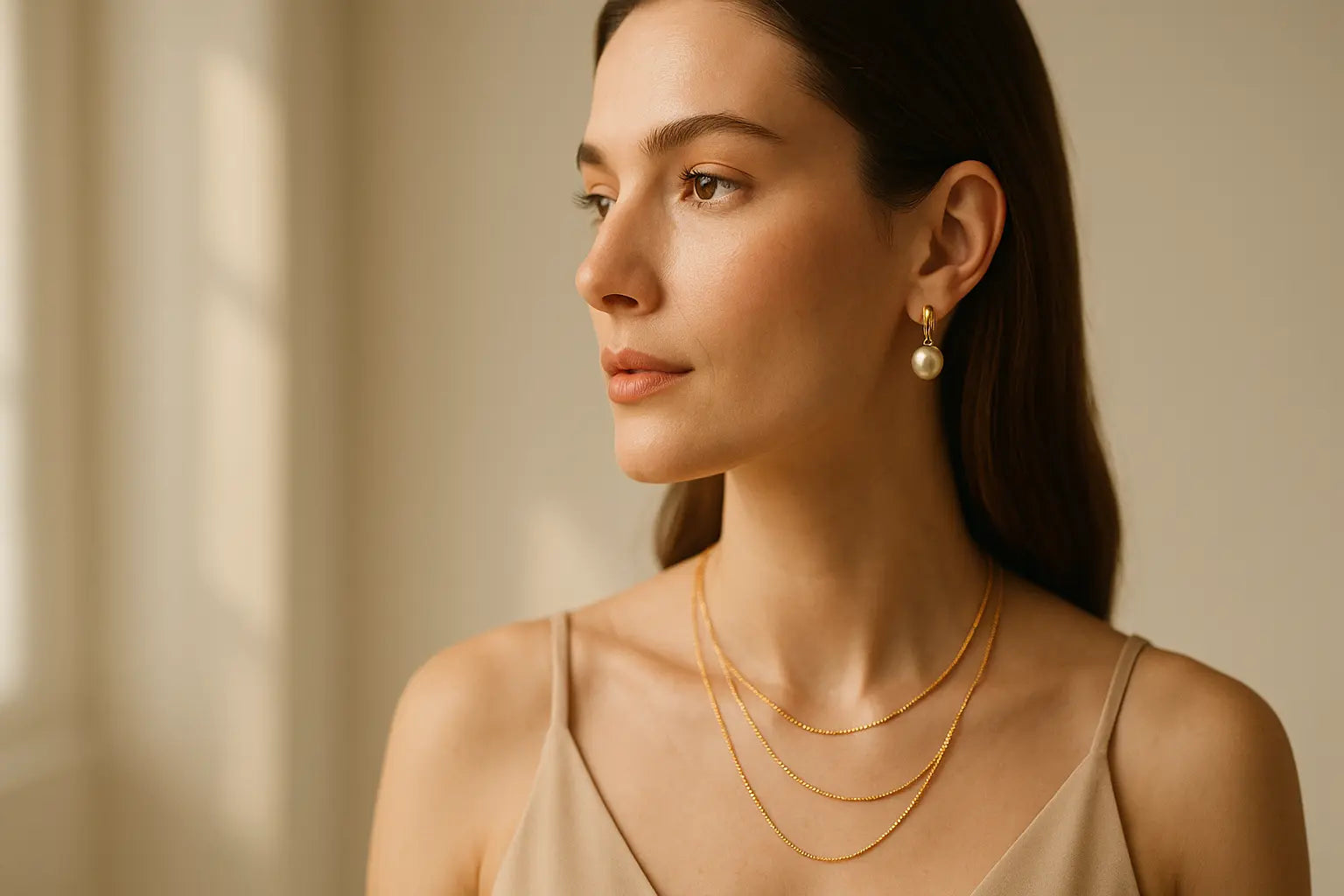 Wir verwenden nur ausgewählte Materialien – 18K Gold, natürliche und unregelmäßige Perlen sowie hochwertigen Titanstahl – um einzigartige Stücke zu gestalten, die zeitlose Eleganz und moderne Leichtigkeit ausstrahlen.